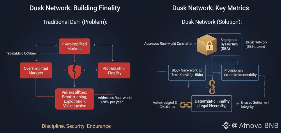@Dusk Network exists because many on-chain systems are designed around an oversimplified view of markets. I have heard the same concern echoed repeatedly from traders, builders, and institutional players alike even if they phrase it differently each time decentralized finance works well right up until real capital, real regulation, and real timing constraints collide. That is usually the point where weaknesses stop being theoretical and start causing damage.
