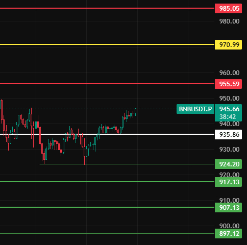 BNB w nocy zwróć uwagę na 936, jeśli tylko utrzyma się powyżej tego poziomu, to ta fala 4-godzinnego pullbacku zakończy się, a rynek znowu wzrośnie, zwróć uwagę na poziomy oporu 955-970-985 w pobliżu tych miejsc!