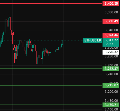Ethereum w nocy zwróć uwagę na 3290, jeśli tylko utrzyma się powyżej tego poziomu, to ta fala 4-godzinnego pullbacku zakończy się, a rynek znowu wzrośnie, zwróć uwagę na poziomy oporu 3325-3360-3400 w pobliżu tych miejsc!
