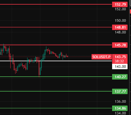 SOL w nocy zwróć uwagę na 143, jeśli tylko utrzyma się powyżej tego poziomu, to ta fala 4-godzinnego pullbacku zakończy się, a rynek znowu wzrośnie, zwróć uwagę na poziomy oporu 145-148-152 w pobliżu tych miejsc!
