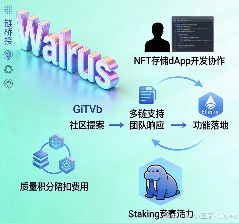 $WAL 的治理机制进一步深化了这份联结。通过质押,用户能直接左右存储协议的演进方向。去年末,社区集体推动多链支持提案,项目方迅速响应,实现了与 Ethereum 的桥接——这是共识的力量,也是信任的果实。