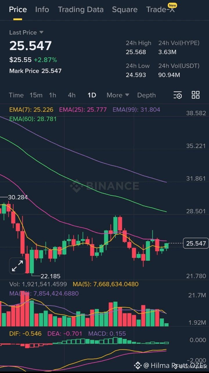 EMA(7): 25.22 → price slightly above (short-term relief)