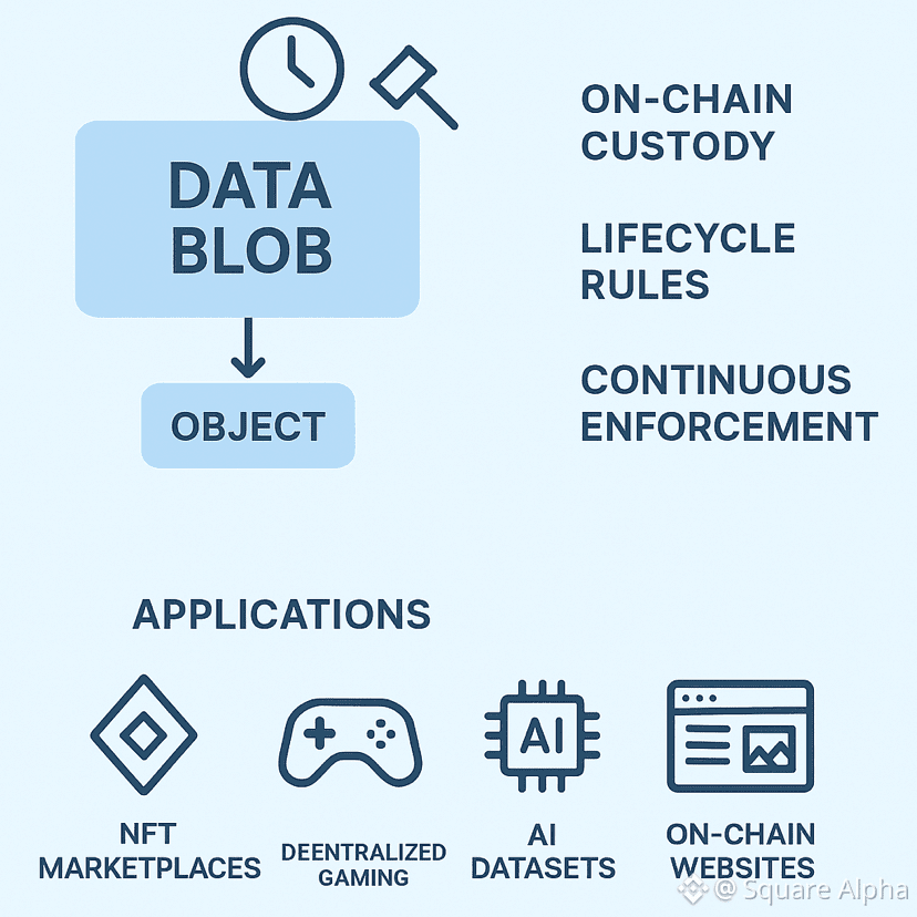 Walrus treats storage differently from conventional systems. Each data blob on Sui is an object governed by programmable rules: