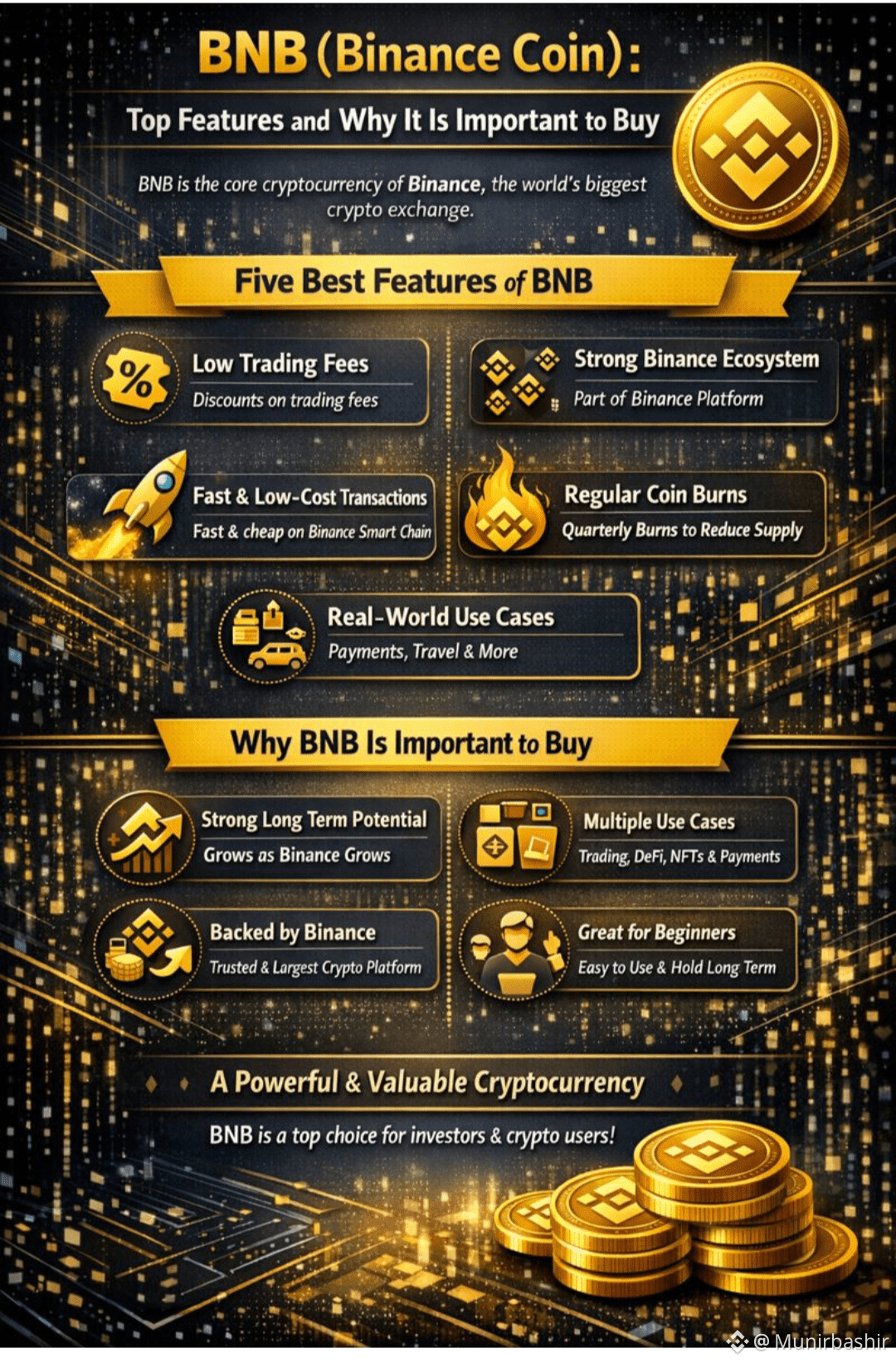 BNB is more than just a cryptocurrency—it is a key part of the Binance ecosystem. With low fees, fast transactions, regular coin burns, and real-world usage, BNB has proven itself as a strong digital asset.