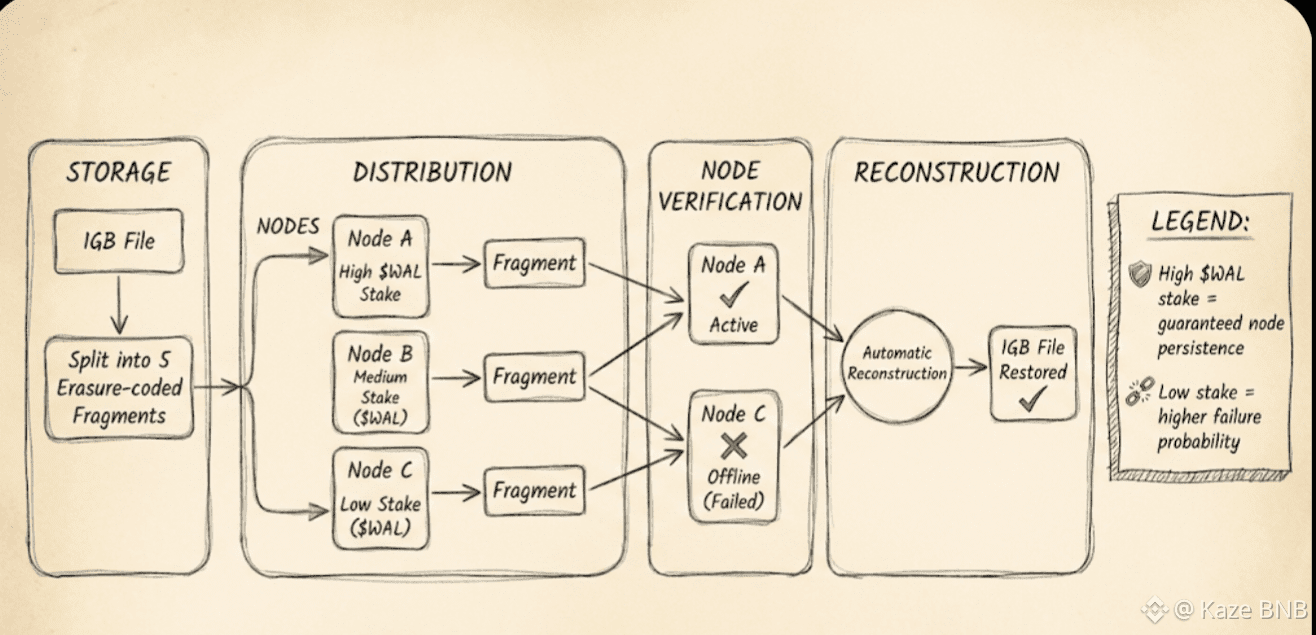 The system distributes your data across multiple nodes. Missing pieces? Rebuilt automatically. $WAL tokens aren’t decoration, they’re accountability. Nodes with stake actually care about staying online. If they fail, they lose. That’s incentive. That’s boring. That’s effective.