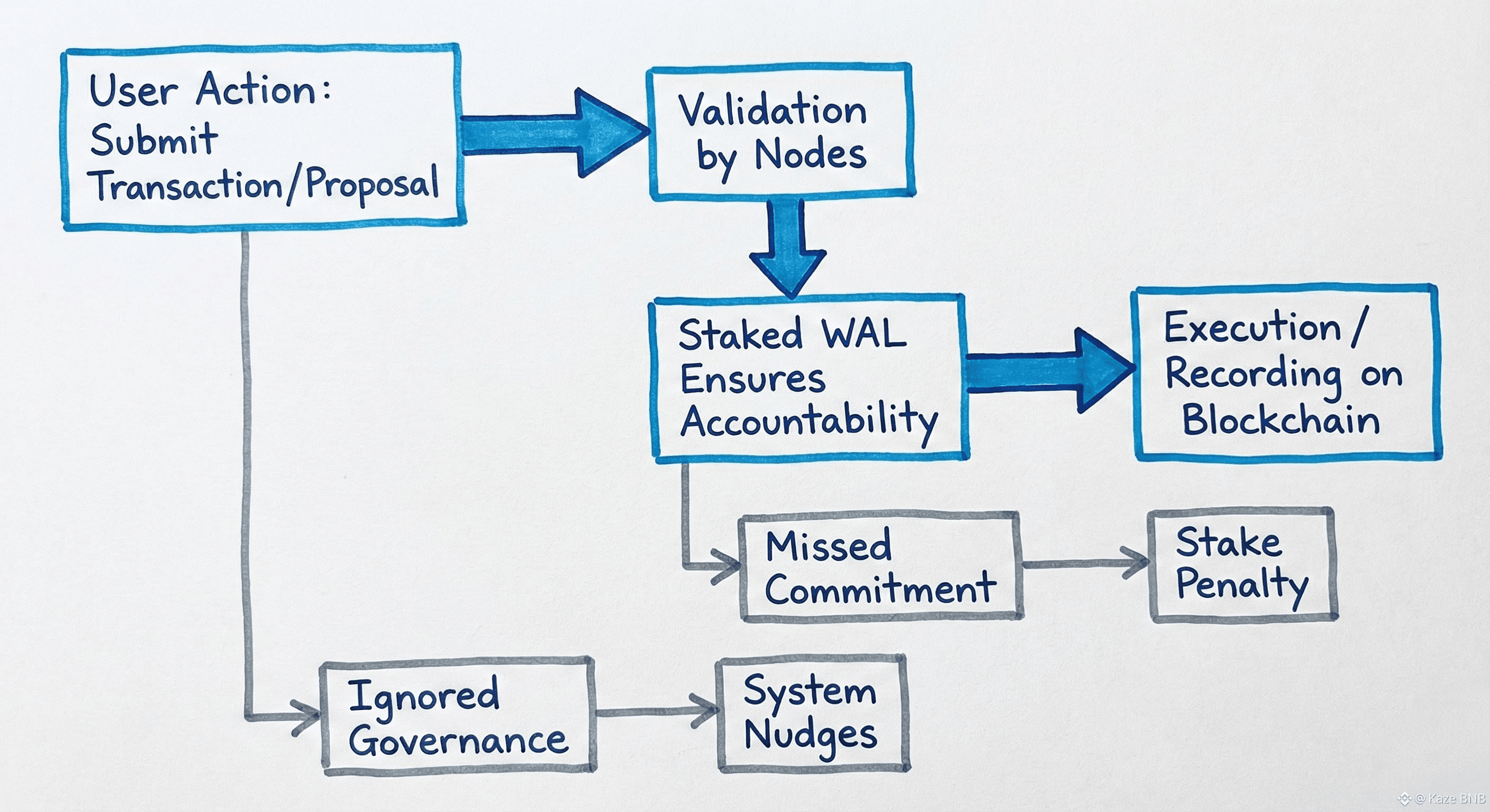 The reality? $WAL isn’t a collectible. It’s the enforcement mechanism. Validators, nodes, and stakers all interact through WAL. Miss a commitment? Lose your stake. Ignore governance? The system nudges you until someone actually follows the rules. Stake and penalties aren’t optional—they’re the backbone of reliability.