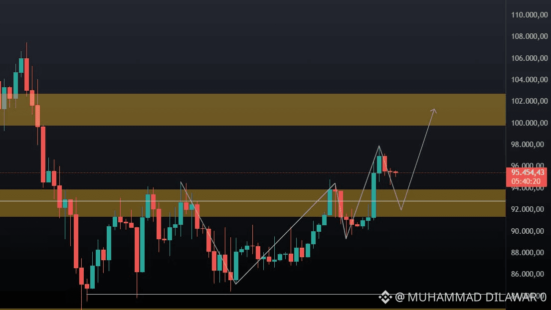 BTC is seeing very low volumes today, a drop in price below 92k in the next few days remains highly likely, which is why the short limit remains active.#MarketRebound #BTC $BTC #BinanceSqure