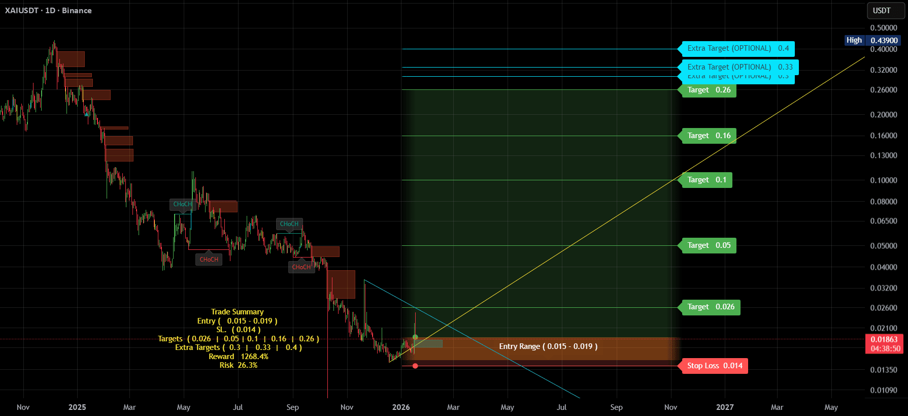 SL 1D poniżej 0.014 (stop loss jest bardzo duży, więc zbieraj powoli lub zmniejsz stop loss, ale przy małych ramach czasowych)