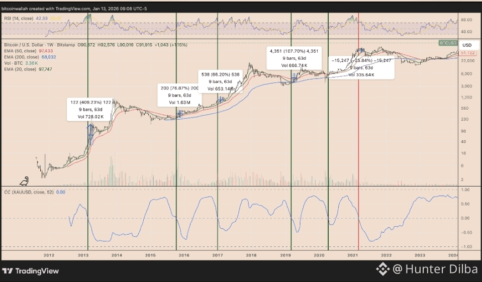 Seenaa keessatti, yeroo waliigalteen kun negativii taʼe, Bitcoin giddugalaan %56 ol-kaʼeera jiʼoota lama keessa. Kan hin milkoofne yeroo tokko qofa ture — bara 2021 yeroo Chaayinaan qodinsa Bitcoin irratti dhorkaa kaaʼee fi gabaan balaa alaa keessa seene.