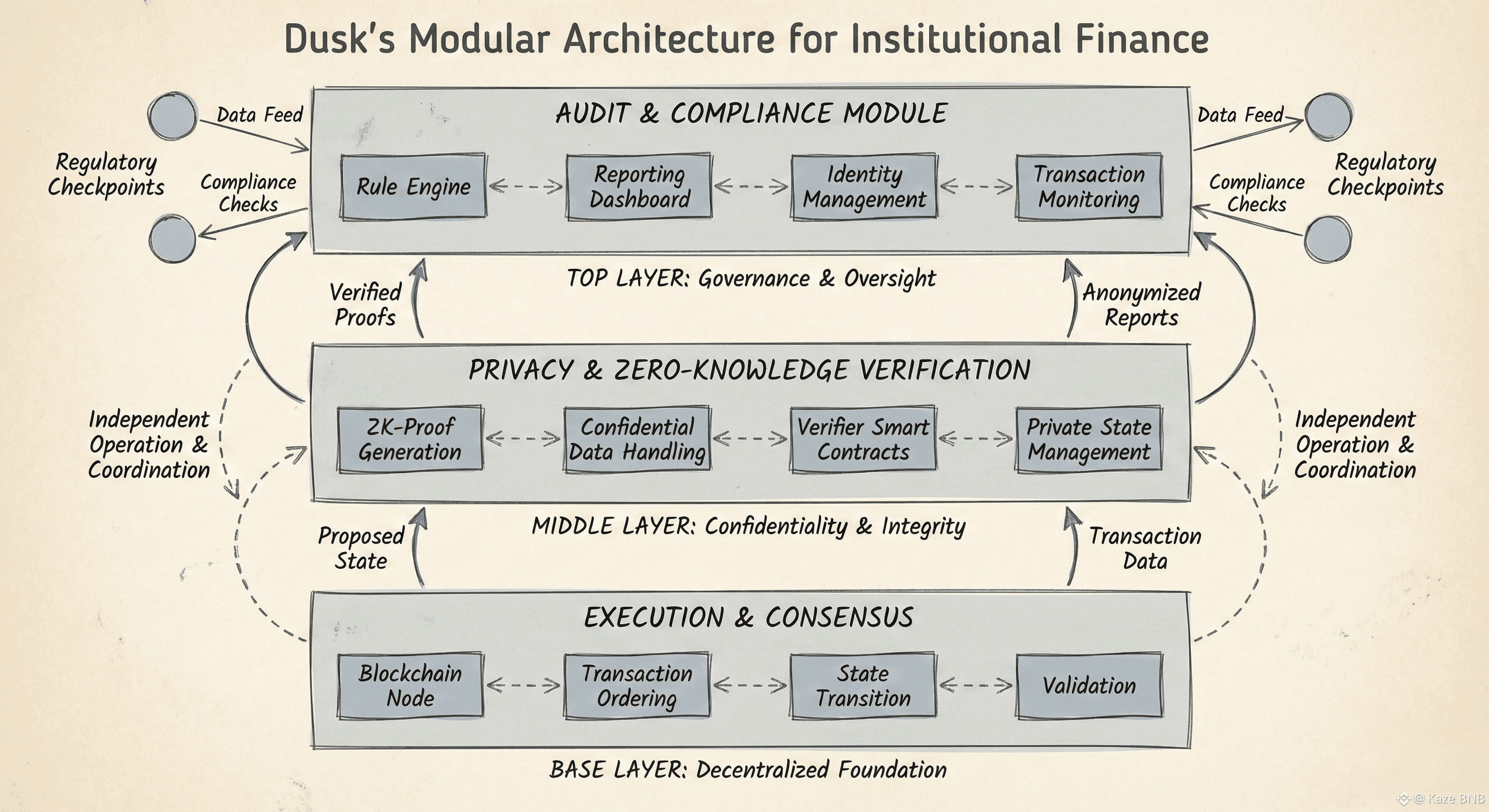 Dusk Foundation addresses this head-on. Its architecture separates execution, privacy, and audit layers, allowing each to operate independently while maintaining tight coordination. Updates in one module, whether adjusting reporting protocols, upgrading privacy parameters, or responding to new compliance regulations, don’t disrupt the other components. That separation ensures operational continuity, which is critical when financial applications manage real assets with real consequences.