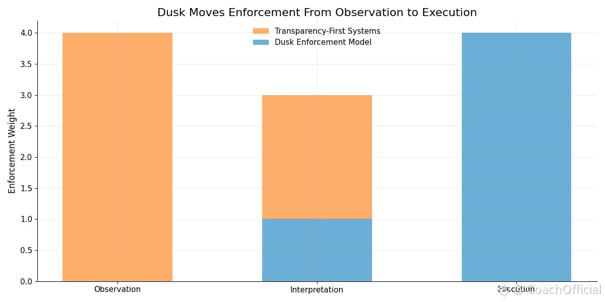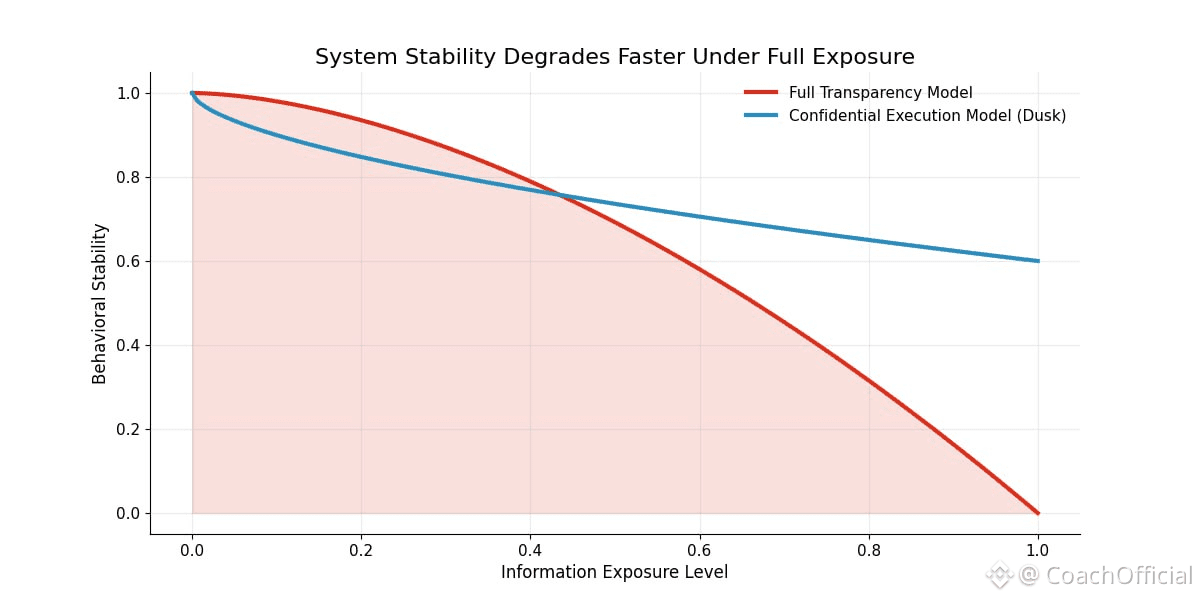 As onchain systems mature, one thing often becomes hard to ignore. Financial activity does not scale well in environments where everything is permanently exposed. Transparency by itself does not guarantee trust. In practice, it often introduces fragility. Dusk is built around this reality. It treats confidentiality as something financial systems in practice, need in order to behave predictably, not as an optional upgrade layered on later. Traditional financial systems already reflect this logic. Information is shared selectively. Market participants operate with partial visibility. Auditors check compliance within defined boundaries. Regulators step in through structured processes, not constant surveillance. This structure exists because full exposure creates real problems. It encourages exploitation and destabilizes behavior. Dusk brings this thinking onchain by clearly separating what must be verifiable from what must be visible. At the protocol level, that separation is enforced directly. Transactions and asset states can remain confidential, while cryptographic proofs show that rules were followed. Accountability is preserved without broadcasting sensitive data. Instead of relying on trust in intermediaries, Dusk relies on proofs. Correctness is something that in practice, can be demonstrated, not something users are asked to assume. This has important consequences when systems are under stress. In fully transparent environments, volatility is often amplified by information leakage. Positions become visible. Strategies are copied. Participants react defensively. Dusk limits this feedback loop by reducing unnecessary exposure. Rules are enforced automatically during execution, regardless of attention or scrutiny. If conditions are not met, actions simply do not execute. Prevention replaces cleanup after the fact. For developers, this changes how applications are designed. Building on Dusk typically requires defining constraints clearly from the start. Who can interact. Under what conditions. What disclosures are required, and when. These are not informal expectations. They are execution rules. Once deployed, they apply consistently. This clarity removes ambiguity, which is often where financial systems fail. Tokenized assets make the need for this approach obvious. Real world assets brought onchain are not static.