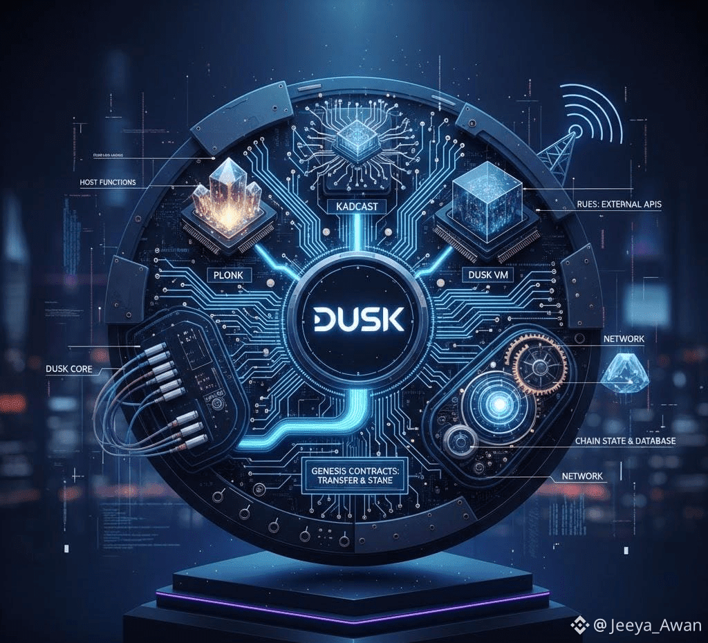 DuskDS includes Rusk (the node implementation) which is powered by Succinct Attestation (PoS-based consensus), Kadcast (P2P networking layer), and the Transfer and Stake Genesis contracts. Together, these elements form a secure, compliant, and composable environment for regulated financial applications.