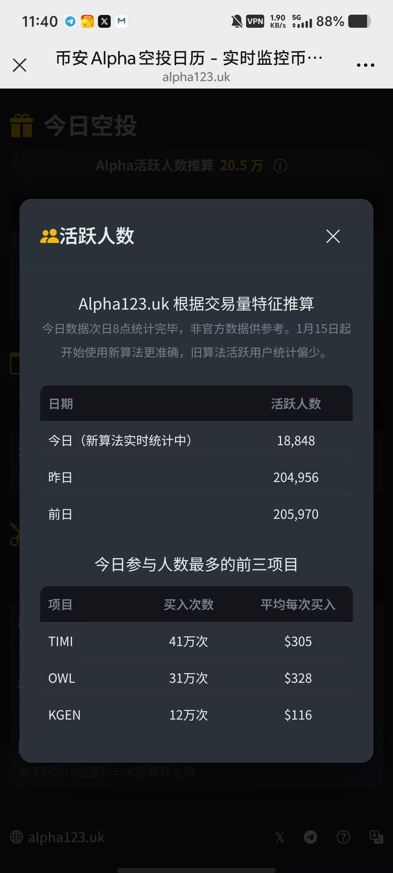 Zobaczyłem dane na stronie internetowej, liczba ludzi ustabilizowała się na poziomie około 200 tysięcy. Nawet w przypadku konkursów handlowych, dzienny wolumen transakcji nadal spada, co pokazuje, że wiele osób już się rozczarowało i odeszło. Rzeczywiście, częstotliwość i wartość airdropów maleją, co zniechęca wiele osób. Kiedyś można było zdobyć 200, a nawet 180 punktów z maksymalnych 255, a teraz przy 255 można zdobyć tylko dwa razy, a czasami nawet tylko raz, co jest ogromną różnicą. Brak airdropów w weekendy tylko pogarsza sytuację, a zbieranie alpha wydaje się marnowaniem czasu na szukanie zajęcia.