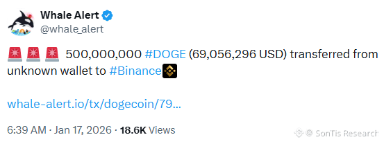 🔸Một ví lớn thực hiện lệnh chuyển 500 triệu DOGE tương đương hơn 65 triệu USD lên sàn. Động thái này thường được coi là tín hiệu chuẩn bị bán tháo, cho thấy dòng tiền thông minh đang thiếu niềm tin vào khả năng duy trì đà tăng