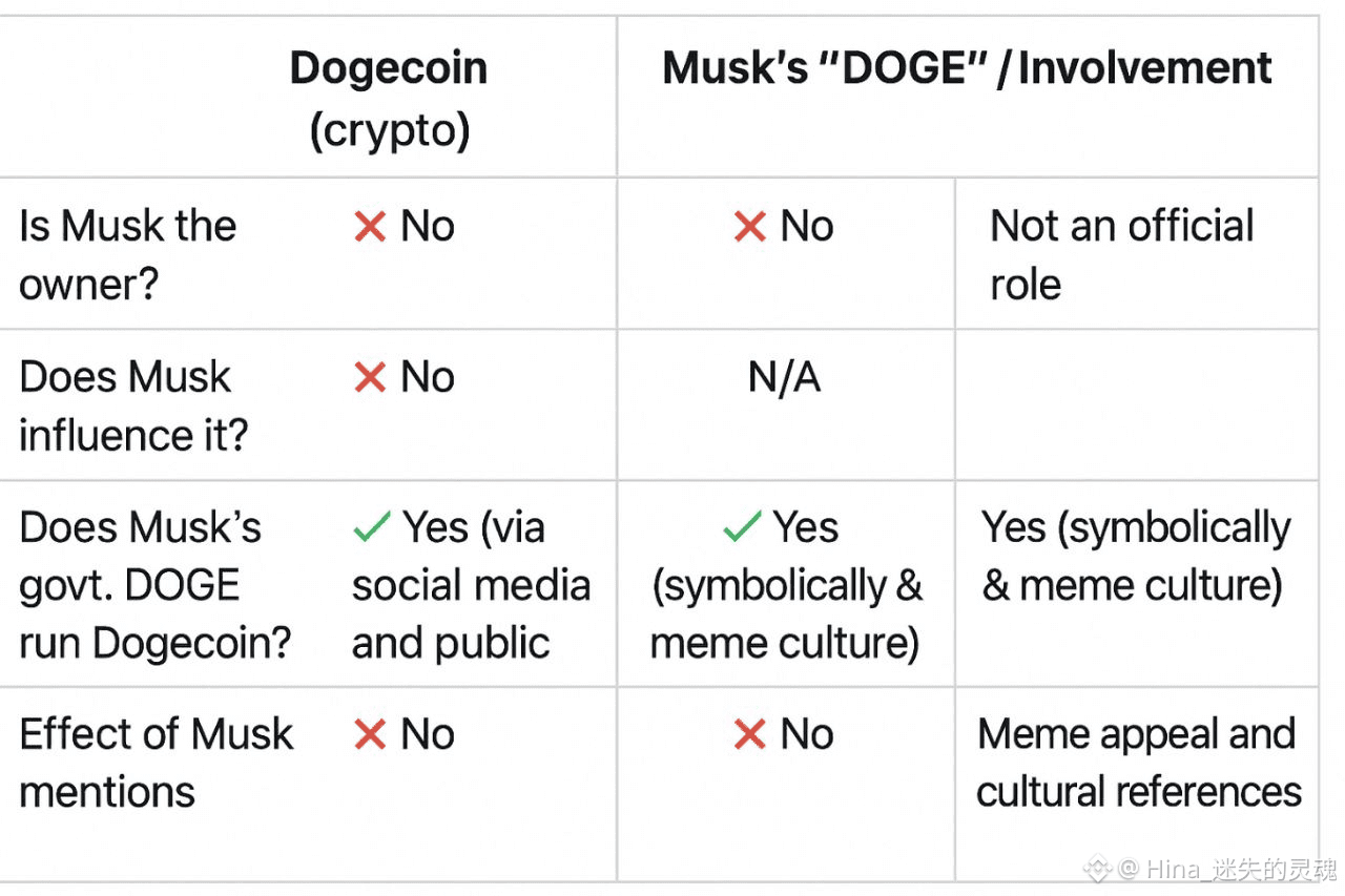 ‎There’s sometimes confusion with a separate initiative called “Department of Government Efficiency” (DOGE) — a U.S. government efficiency initiative associated with Musk because of a matching acronym. This has no real connection to the Dogecoin cryptocurrency other than the shared name and meme culture reference. Musk’s involvement with that government DOGE was as an adviser and influencer, not as a crypto project leader.