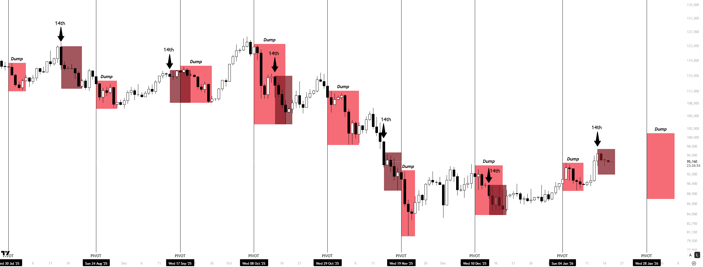 $BTC Większość z was już zna mój 14. framework pivot i zachowanie, które zazwyczaj się z tym wiąże. Oto jak kształtuje się następne okno.