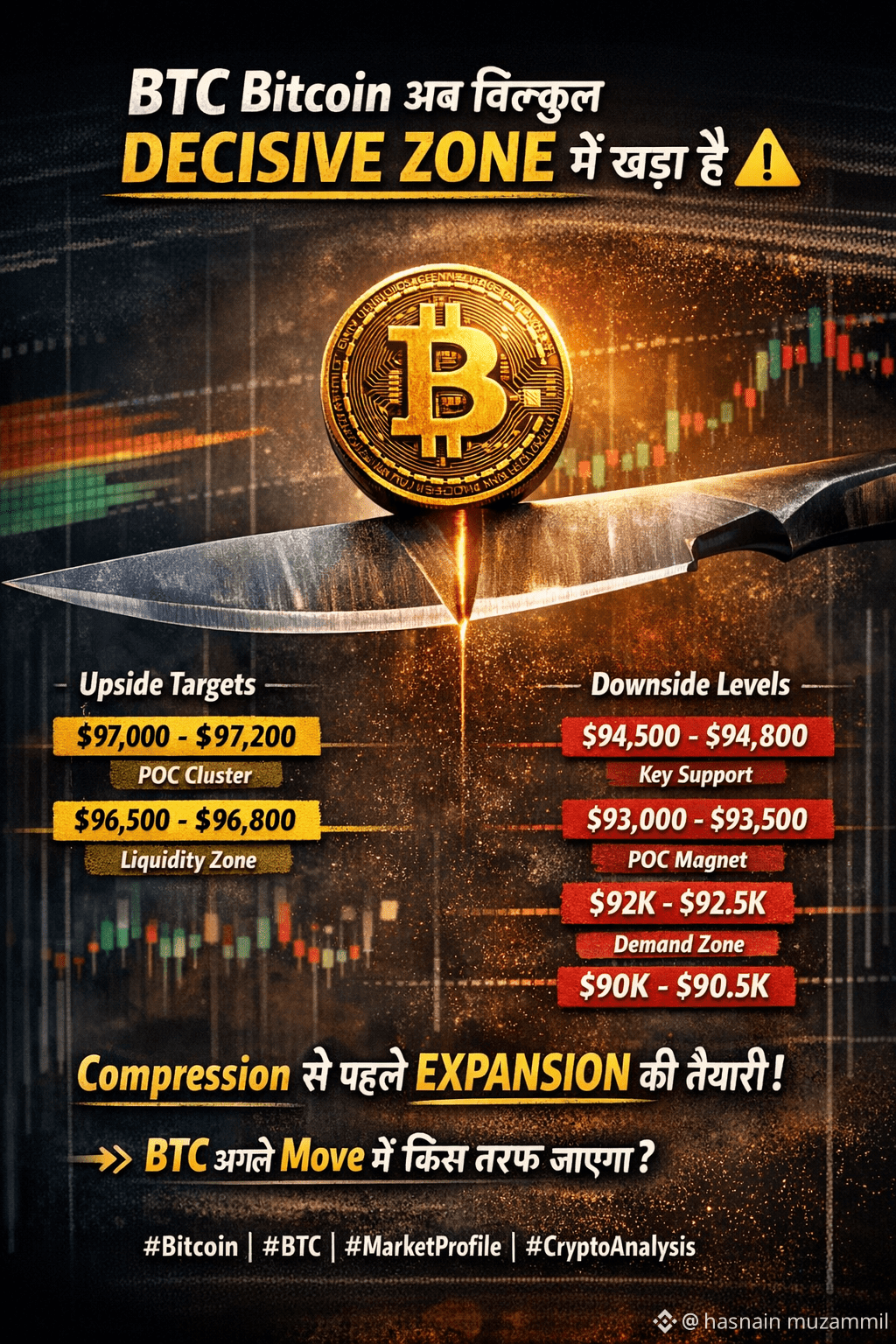 93,000–$BTC 93,500 ki taraf ho sakta hai — yahan ek naked POC ka magnet effect hai. Aur agar pressure zyada hua to $92K–$92.5K strong demand area hai, jabke last major support $BTC 90K–$BTC 90.5K ke paas banta hai.