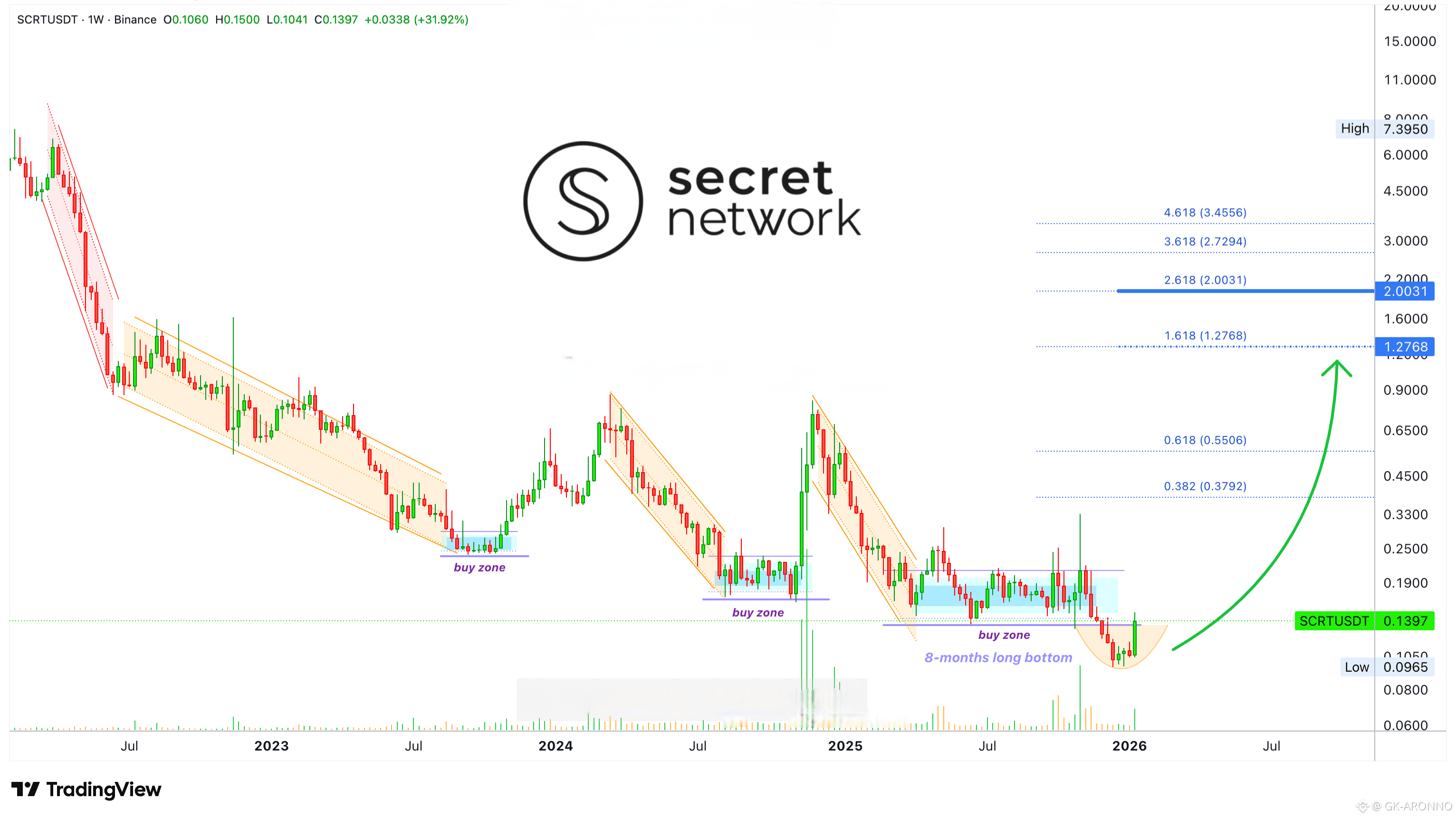 Here Secret Network was trading with a flat bottom until late 2025. This flat bottom invariably becomes a support zone and an entry zone. Many people buy using the conventional stop-loss. Right after, we see a stop-loss hunt event.