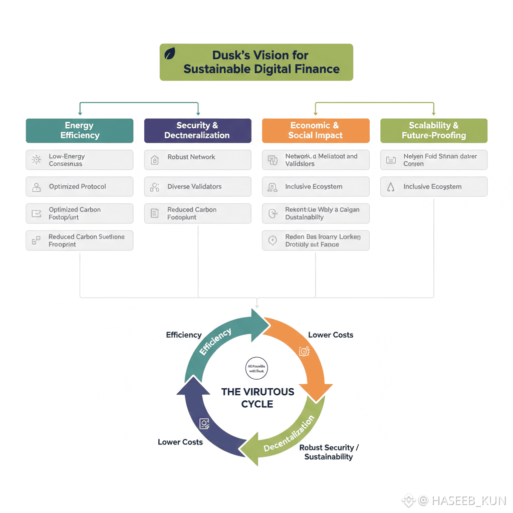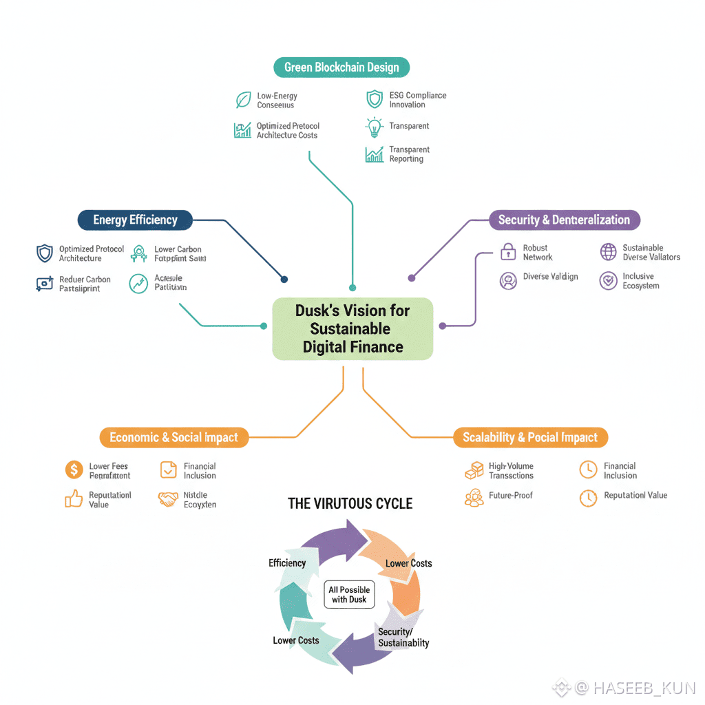 In conclusion, Dusk sets a new standard for sustainable digital finance. Its energy-efficient, environmentally responsible design proves that blockchains can be powerful, secure, and green. For ESG-conscious investors and forward-looking institutions, Dusk is more than a platform—it is a statement: that digital finance can grow, innovate, and scale without leaving a carbon footprint behind.