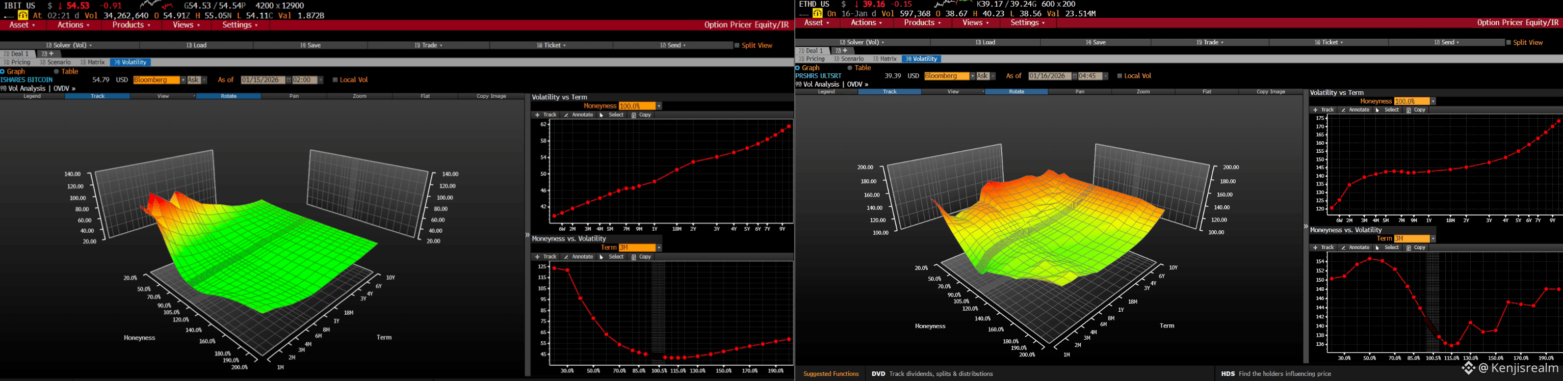 近期 $BTC $ETH 選擇權市場也沒有明顯避險行為,與去年底保持差不多的結構。
