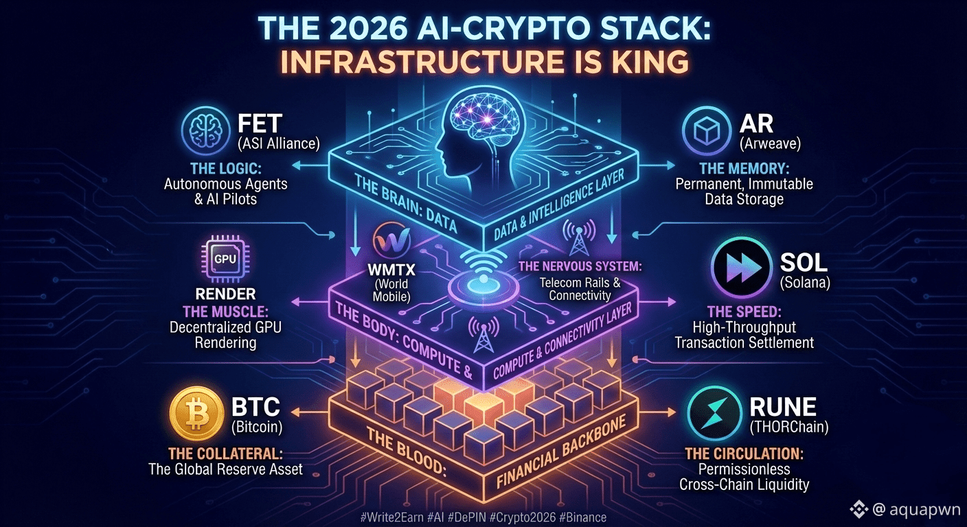 The real alpha in 2026 isn't just in holding one "AI coin"—it is in understanding the synergy. The intelligence of $FET needs the compute of $RENDER, the connectivity of $WMTX, and the storage of $AR.