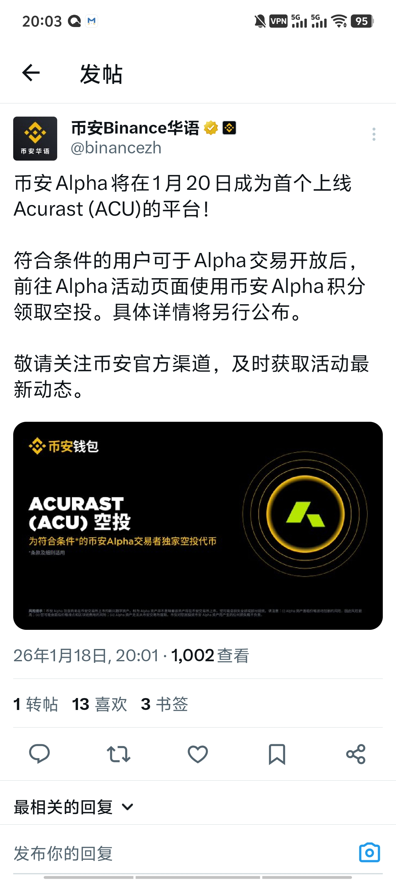 Interakcja Binance Alpha została dziś zakończona.