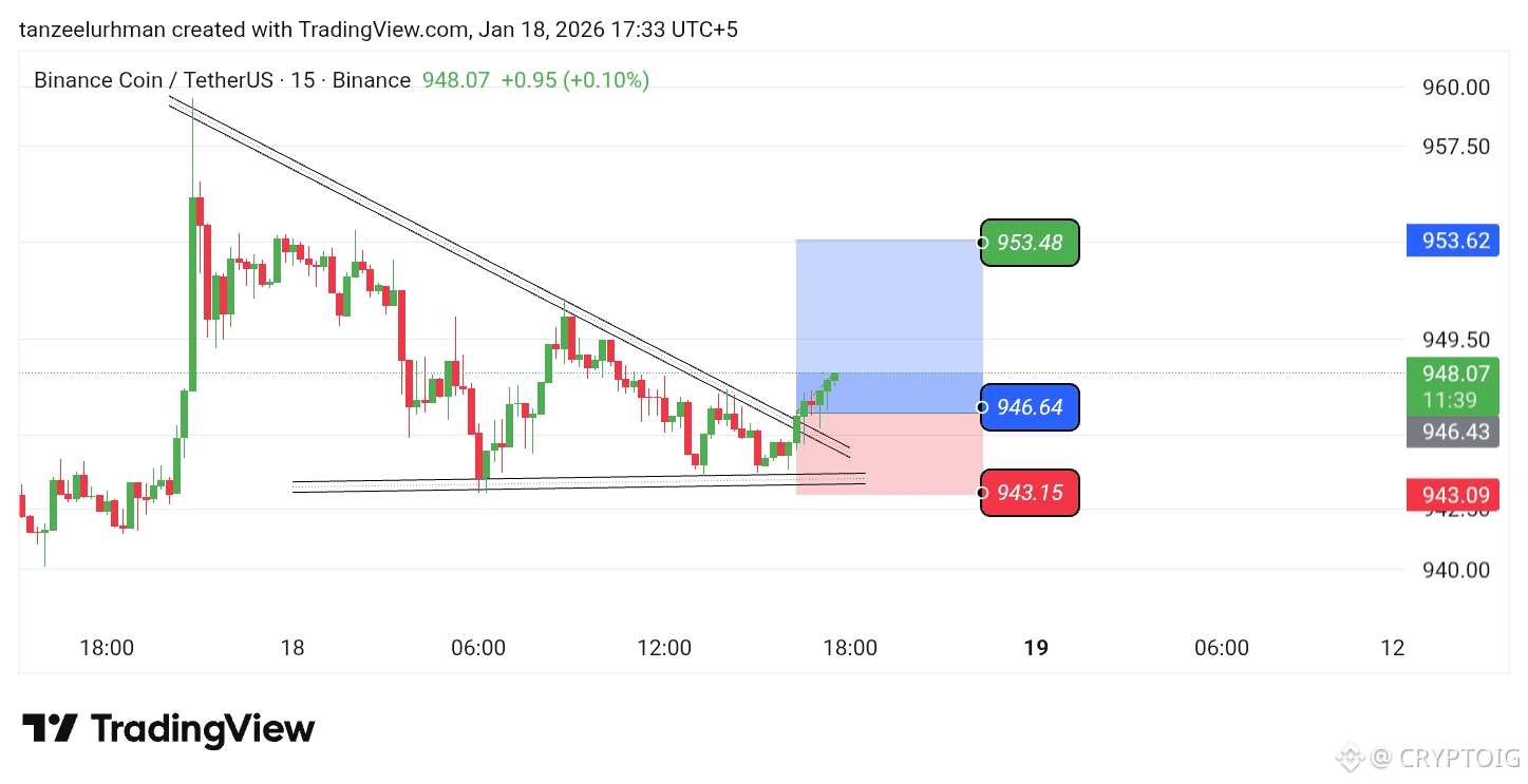 The $BNB has just given a breakout of a bullish pattern and now the market is seeing bullish activity, you can enter the trade if you want.