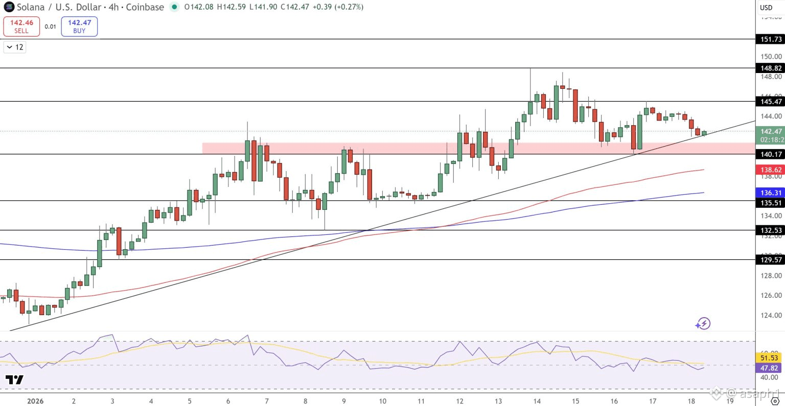 El volumen de transacciones está que arde, superando los $2.25 mil millones, lo que nos dice que hay mucha gente activa y no solo mirando desde la barrera. 📊 Técnicamente, Solana está aguantando como los machos por encima de un soporte crítico de $140. Si logramos romper la barrera de los $145.47, prepárense, porque el camino se despeja para buscar los $151.73. Por ahora, el mercado está en un punto de equilibrio (con un RSI de 51.53), como tomando aire antes de decidir hacia dónde va a saltar.