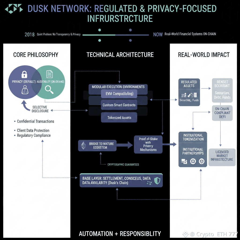 From the start, the vision behind Dusk Network was simple in wording but complex in execution: build a Layer 1 blockchain that regulated finance could actually use. That meant accepting constraints rather than pretending they don’t exist.