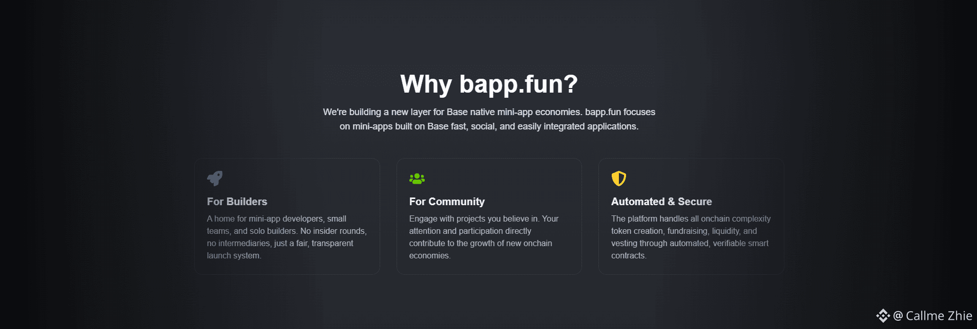 As Web3 infrastructure continues to mature, the focus is gradually shifting from speculative launches toward sustainable application development. Bapp.fun positions itself in this transition by introducing a launch ecosystem designed specifically for mini-apps, where community participation and on-chain accountability play a central role.