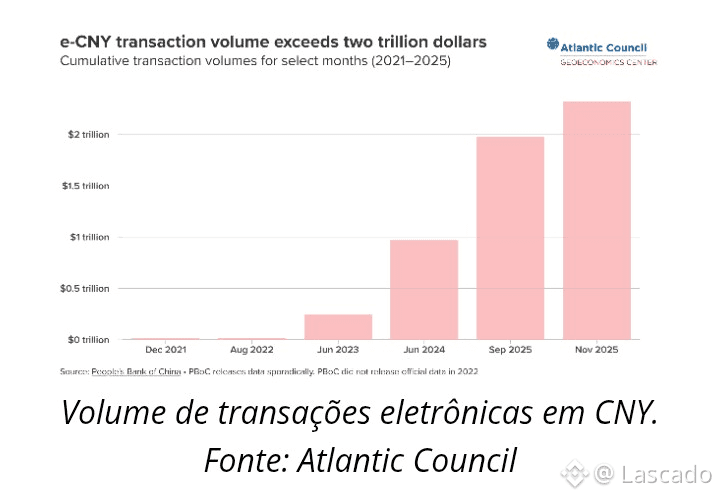 E não para por aí não: dentro da própria China, o e-CNY tá crescendo que é uma beleza. O Banco Popular da China mostrou que já foram mais de 3,4 bilhões de transações, batendo uns 16,7 trilhões de yuans (US$ 2,4 trilhões). Isso é um aumento de mais de 800% comparado com 2023.