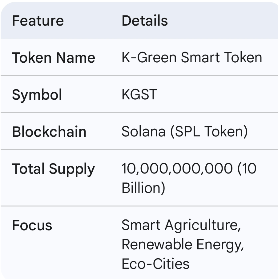 W erze, w której zrównoważony rozwój środowiska i bezpieczeństwo żywności stają się globalnymi priorytetami, KGST (K-Green Smart Token) wyłania się jako rozwiązanie oparte na blockchainie, zaprojektowane w celu zlikwidowania luki między technologią a rolnictwem. Zbudowany na blockchainie Solana, KGST ma na celu zrewolucjonizowanie ekosystemu rolniczego poprzez integrację inteligentnego rolnictwa, zielonej energii i zdecentralizowanych finansów.