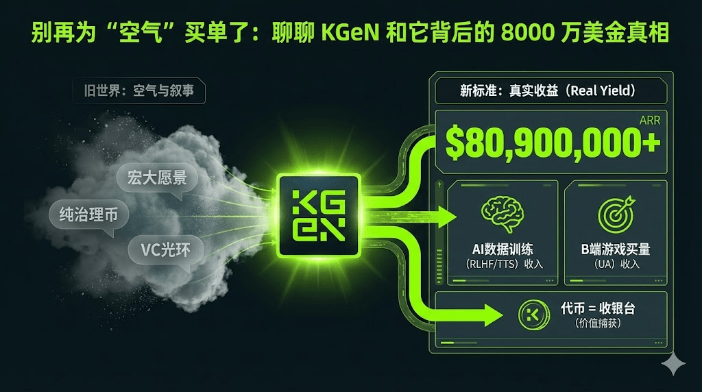 KGeN najpierw buduje biznes w Web2 (ogromne przychody), a potem przechodzi na Web3, aby rozdzielić wartość. Ta narracja Real Yield (prawdziwy zysk) w 2026 roku, a nawet dalej, będzie jedynym kryterium rozróżniającym 'złoto' i 'piasek'.