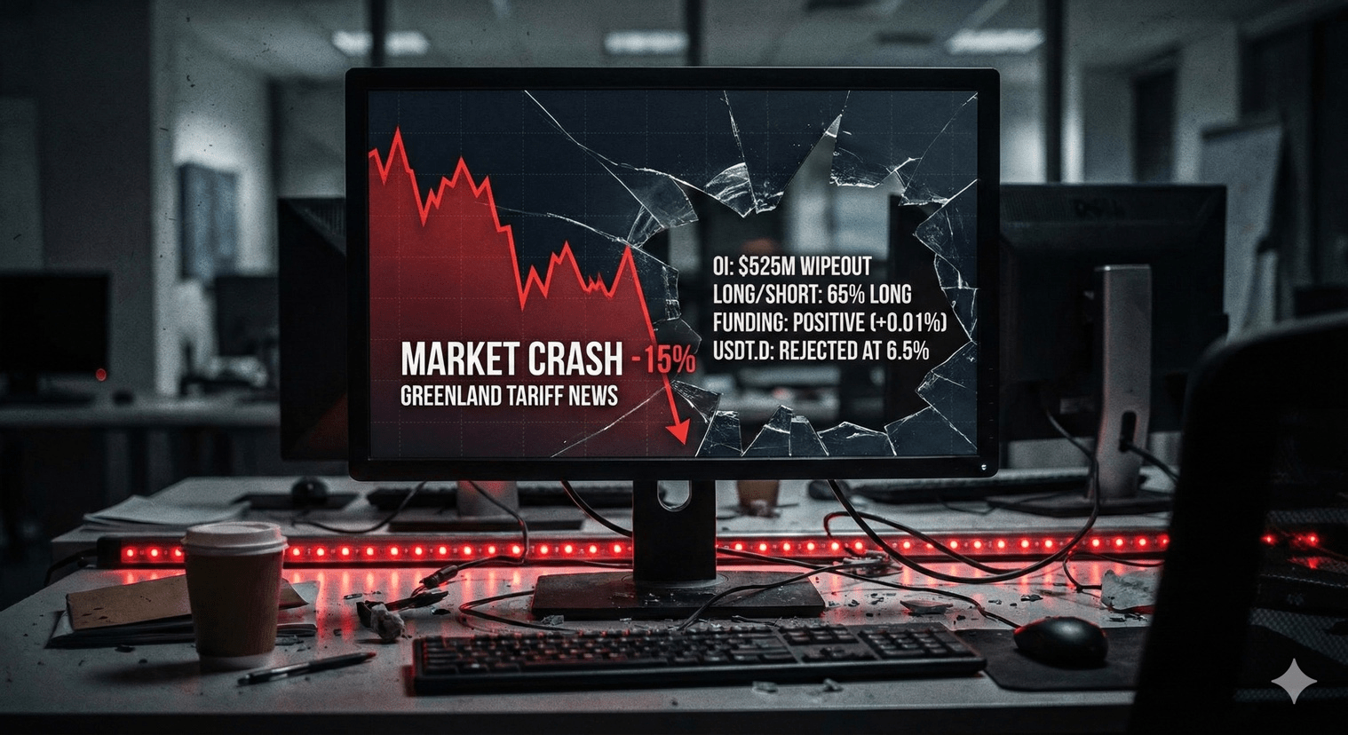 Podczas gdy Crypto Twitter początkowo starał się obwiniać awarie giełd lub konkretnego wieloryba, przyczyną były czysto geopolityczne czynniki. Niespodziewane ogłoszenie Donalda Trumpa dotyczące znaczących ceł na europejskie narody - związane z utknęciem w próbie zakupu Grenlandii - spowodowało, że tradycyjne kontrakty finansowe zanurkowały. Przy zamkniętych rynkach akcji z okazji Dnia MLK, kryptowaluty wchłonęły pełną siłę paniki.