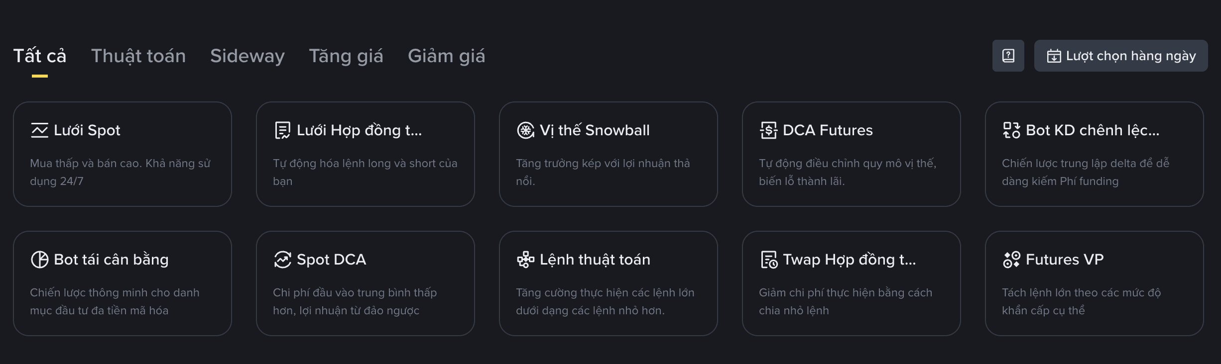 Các loại Bot giao dịch Binance