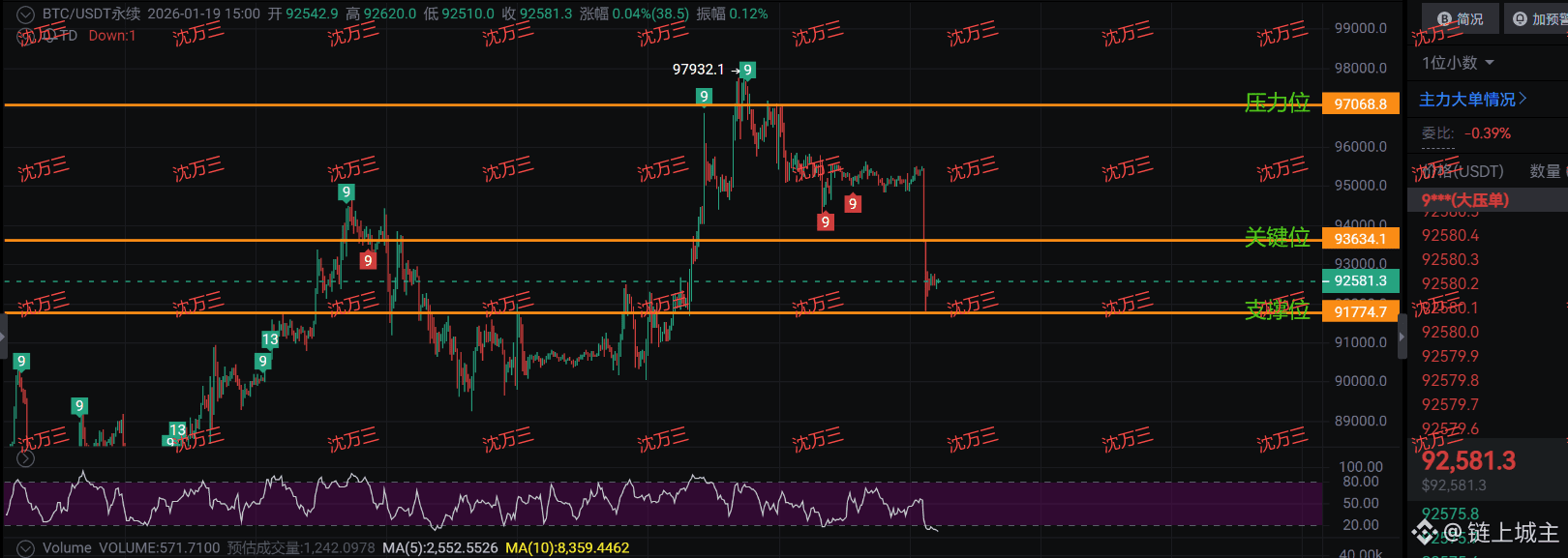 “刀光剑影的币圈,今天刀刃指向了空头!”——比特币昨夜暴跌3000点,92581美金的价格刺穿91774强支撑,93634关键位成空头新据点。