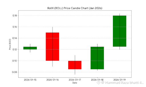 $ROLL RollX (ROLL), a high-performance decentralized perpetual exchange on the Base network, shows a highly volatile but currently bullish trend as of January 19, 2026.
