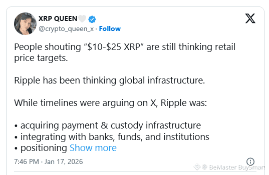 Debata na temat $XRP osiągnięcia 10 dolarów lub 25 dolarów nabiera tempa, ale według kryptowalutowej eksperta XRP Queen (@crypto_queen_x), te liczby mogą być jedynie "cenami detalicznymi." Podczas gdy tłum koncentruje się na krótkoterminowych wzrostach, Ripple cicho buduje "instalacje" dla przyszłości globalnych finansów. 🌍