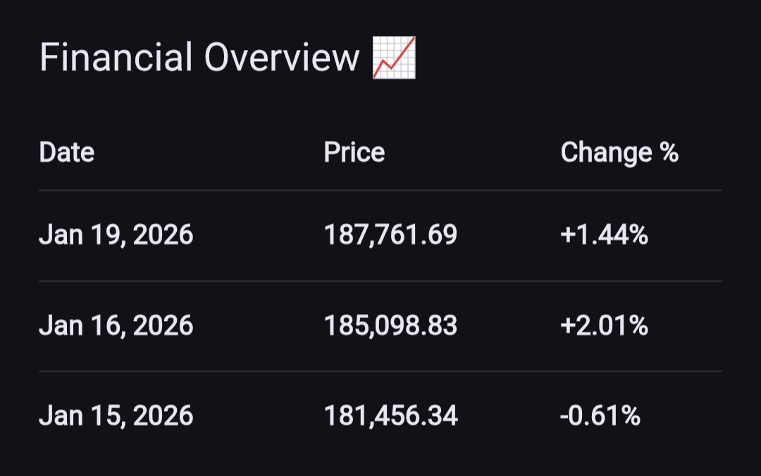 Indeks KSE-100 doświadczył silnego wzrostu w piątek, 16 stycznia 2026 roku, gdy wzrósł o 3,642.50 punktów (2.01%) do zamknięcia na poziomie 185,098.83 punktów w świetle doniesień o deeskalacji między USA a Iranem. Następny skok odnotowano również w poniedziałek, 19 stycznia 2026 roku, kiedy indeks zyskał 2,662.86 punktów, osiągając nowy najwyższy poziom w historii wynoszący 187,761.69 punktów.