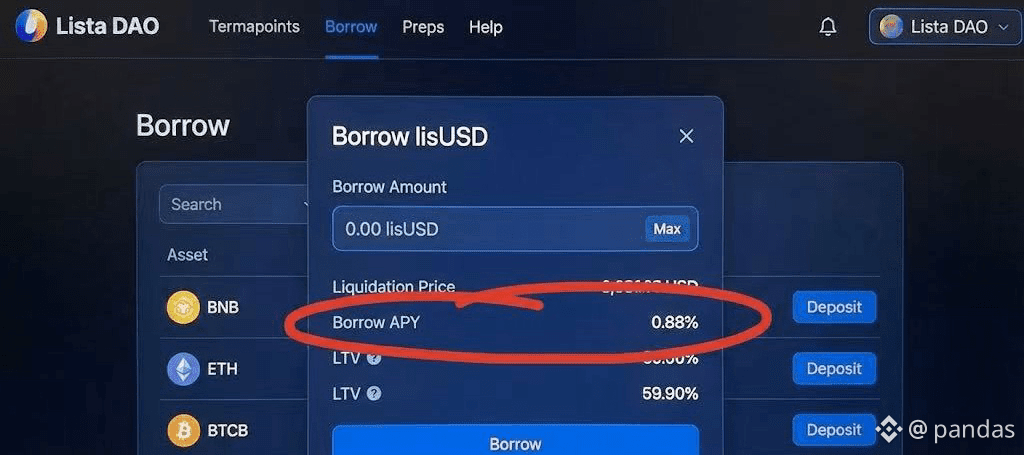 借贷成本: 你在 Lista DAO 借钱,利息只要 ~1%。