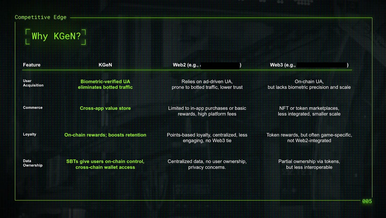 目前看,还没有哪个项目能同时覆盖AI数据服务、游戏UA、DeFi增长这三个场景。KGeN的差异化在于用户规模(48.9M)和跨赛道变现能力——这可能是它敢喊出$80M+ ARR的底气所在。