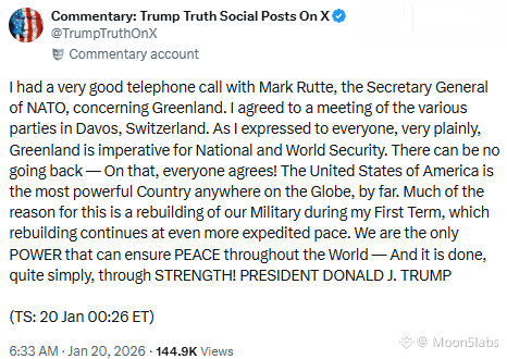 Rutte later confirmed that he discussed Greenland’s security with the U.S. president and that the goal of the Davos meetings would be to ease tensions triggered by Trump’s tariff threats.