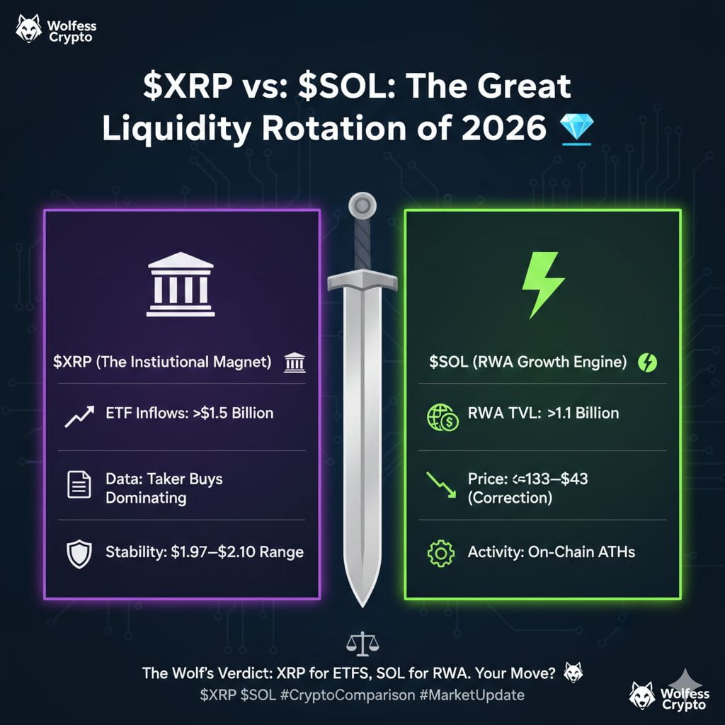 The early weeks of 2026 have revealed a fascinating divergence in the altcoin market. While the broader market remains "choppy," two giants are fighting for dominance, each backed by a completely different narrative: Institutional Utility (XRP) vs. On-Chain Scalability (SOL).