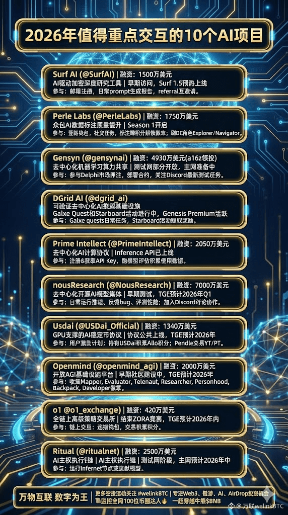 目前重点关注的项目有surf、gensyn、nousResearch、usdai、openmind等