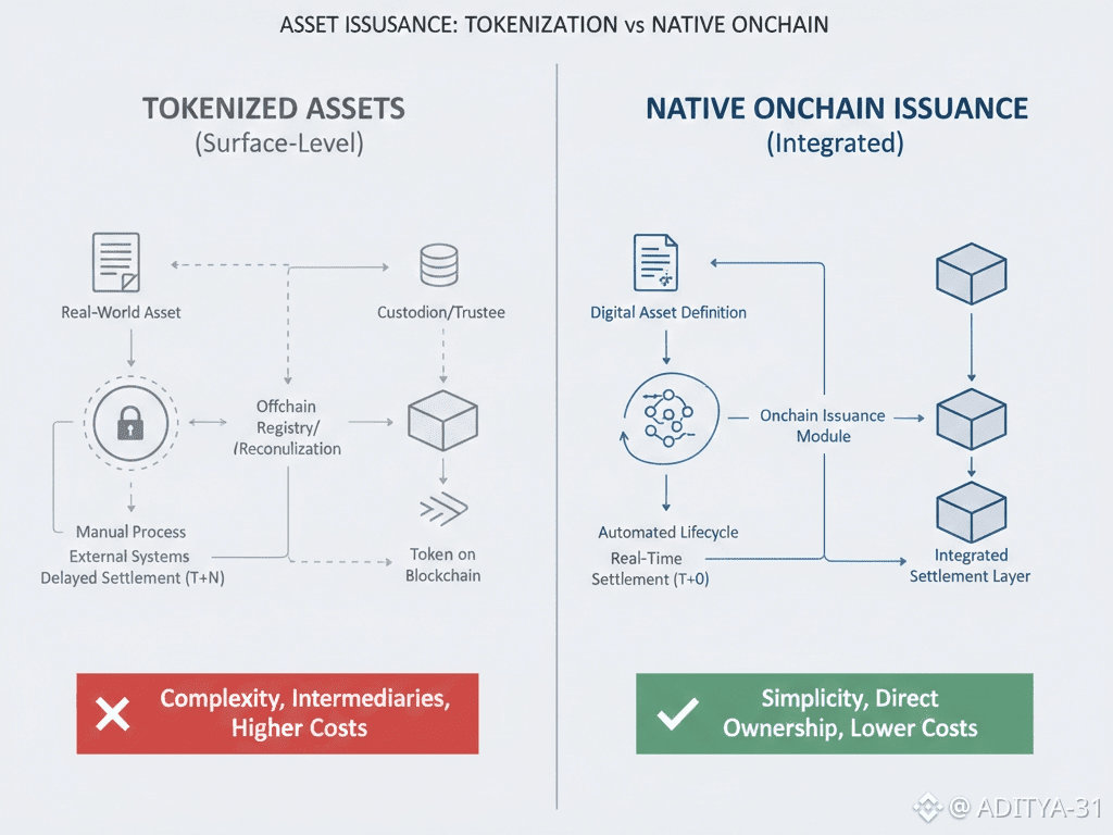 Dusk ka focus sirf assets ko “token” banana nahi hai. Yeh native issuance ki baat karta hai — jahan asset ka existence hi blockchain ke andar hota hai. Issuance se leke transfer aur final settlement tak, pura lifecycle onchain handle hota hai. Is model me asset ko represent karne ke liye kisi external custodian ya parallel ledger ki zarurat nahi padti.