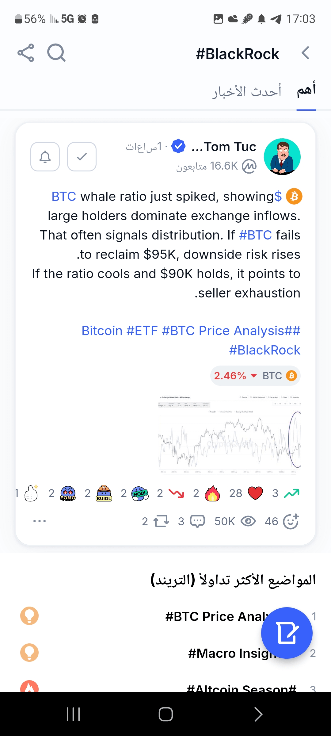 Wzrost udziału wielorybów btc