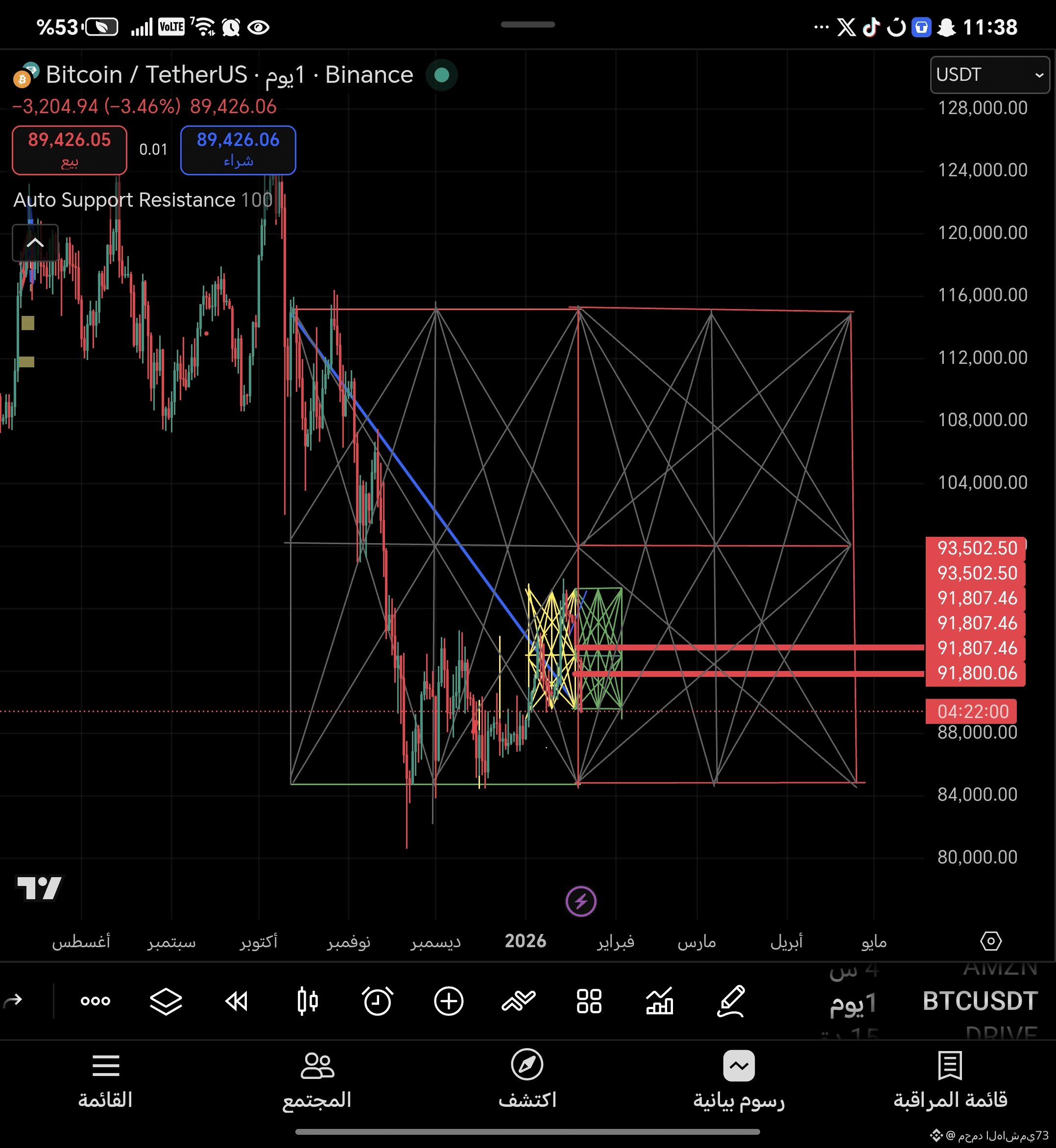 🎯 الهدف الأقرب: 91.8k – 93.5k