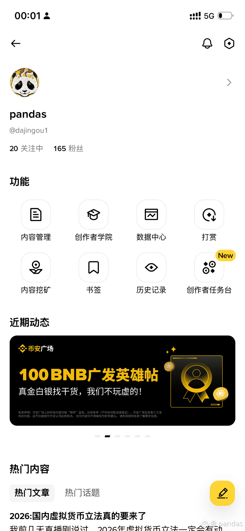 而币安官方每月投入 数万 USDT 的奖池用于激励“创作者任务”。