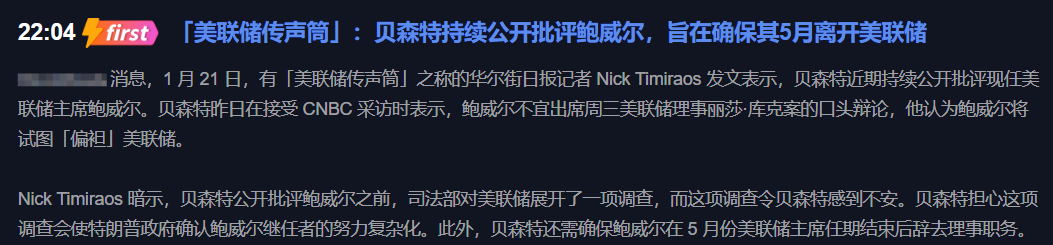 Dziś w nocy dziennikarz Wall Street Journal, który nazywa się „głosem Fedu”, Nick Timiraos, nagle opublikował artykuł, mówiąc, że ktoś wewnątrz Fedu publicznie atakuje przewodniczącego Powella, a także sugeruje, że Ministerstwo Sprawiedliwości już prowadzi dochodzenie. Po tej wiadomości rynek natychmiast stał się nerwowy — jeśli Fed naprawdę się zdezorganizuje, cały rynek finansowy również się wstrząśnie. Choć wydaje się, że ta sprawa nie jest bezpośrednio związana z rynkiem kryptowalut, nie zapominaj, że gdy Fed podejmuje działania, dolar, płynność i ryzyko emocjonalne również się zmieniają, a kryptowaluty są najbardziej podatne na wpływy. Prosto mówiąc: niepewność polityczna = panika na rynku = zwiększona zmienność.