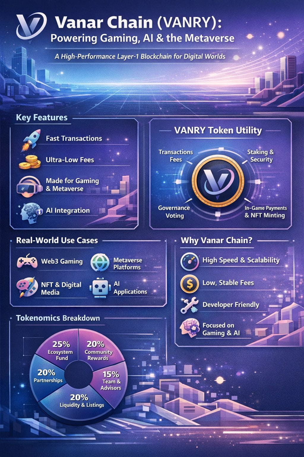 Blockchain technology is rapidly evolving, but not all blockchains are designed to meet the demands of real-world applications. Industries such as gaming, artificial intelligence (AI), and the metaverse require high speed, low latency, and minimal transaction costs—features that many traditional blockchains struggle to provide. Vanar Chain emerges as a purpose-built solution designed specifically to serve these next-generation digital ecosystems.